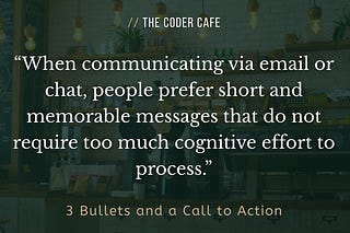 When communicating via email or chat, people prefer short and memorable messages that do not require too much cognitive effort to process.