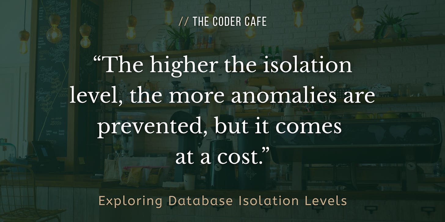 ☕ Welcome to The Coder Cafe! Today, we will explore the main database isolation levels, detailing exactly which anomalies each one prevents. Get cozy, grab a coffee, and let’s begin!
