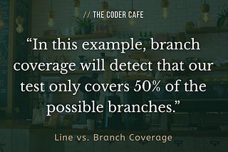 In this example, branch coverage will detect that our test only covers 50% of the possible branches.